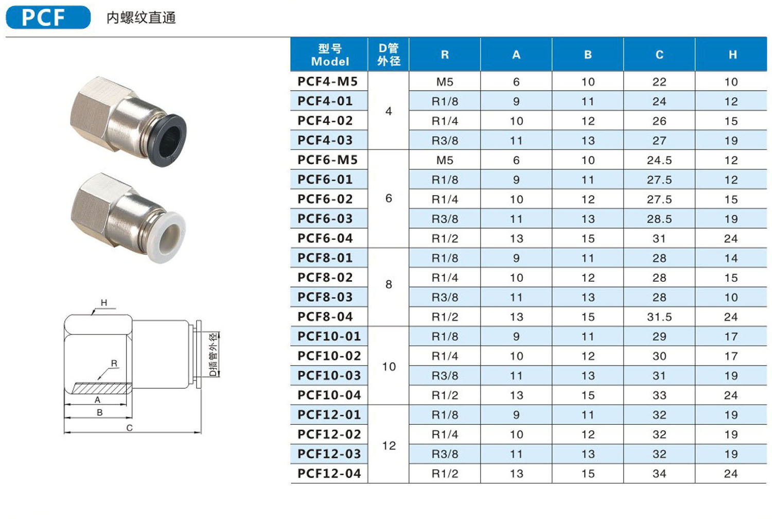 PCF 內螺紋直通