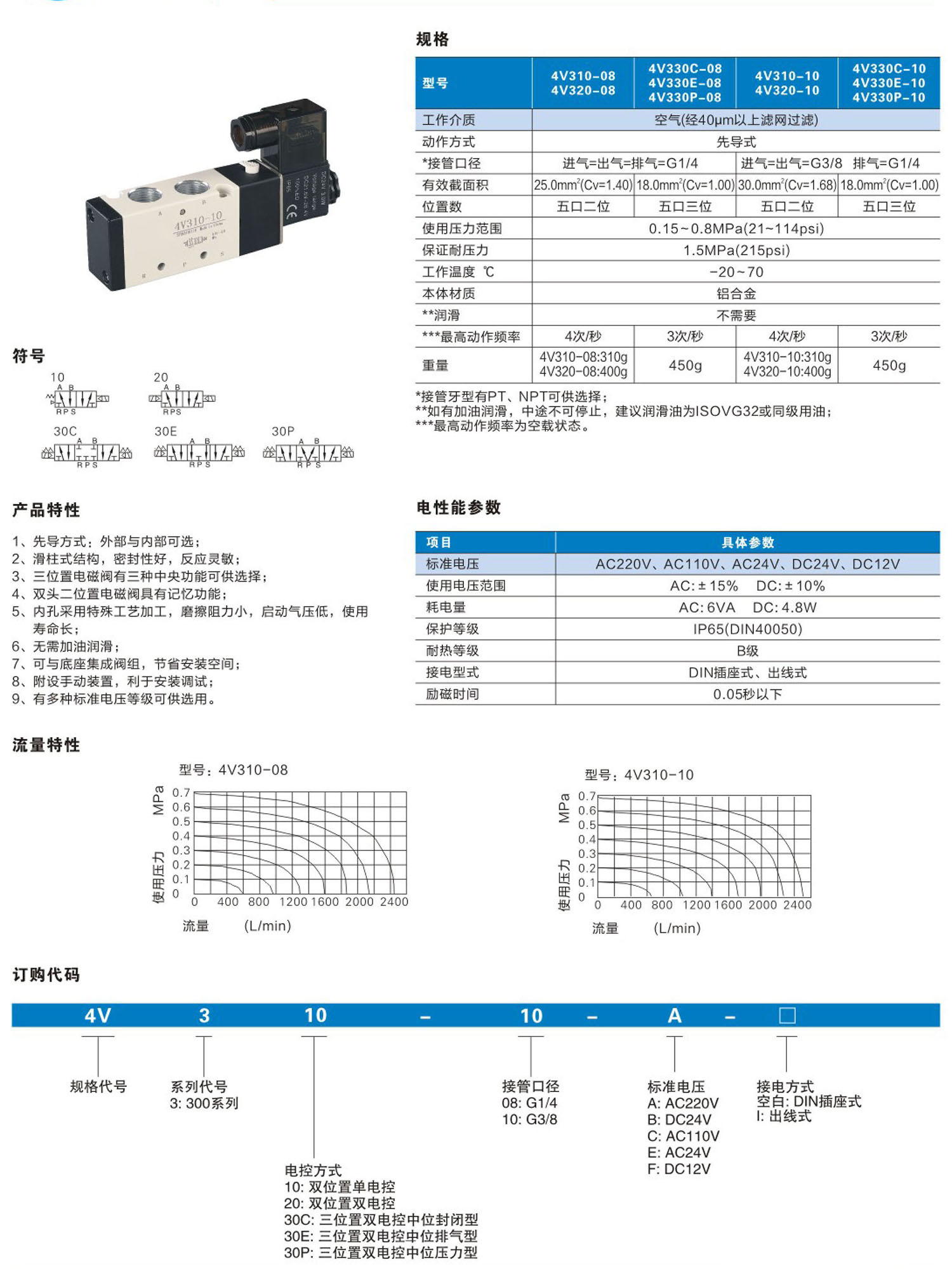 4V300系列電磁閥(五口二位、五口三位)